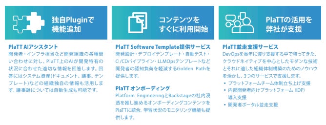 開発者ポータル「PlaTT」シリーズは開発者ポータルBackstageとAIを組み合わせたマネージドサービスです。