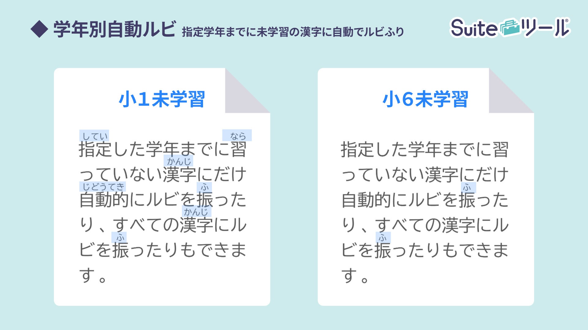 ~ 指定学年までに習っていない漢字に "自動的にルビを振る" ことが可能に!~