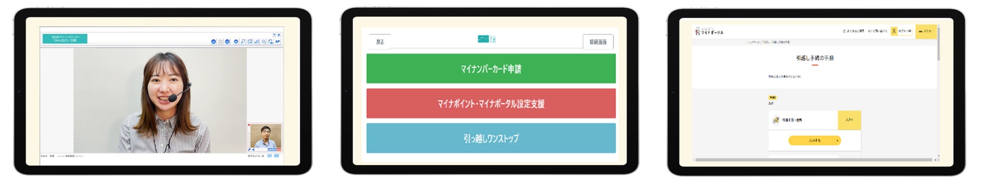 実証実験では、エスプールグローカルのオンライン窓口を市内の行政センターや大型商業施設に設置いたします。同市で導入されている手続きナビや申請サポートプラス(行政手続き支援ツール)の操作、デジタル庁が進めている引越しワンストップサービス*や、マイナンバーカード申請・マイナポイント設定支援の手続きに関するサポートをビデオ通話によって受けることができます。