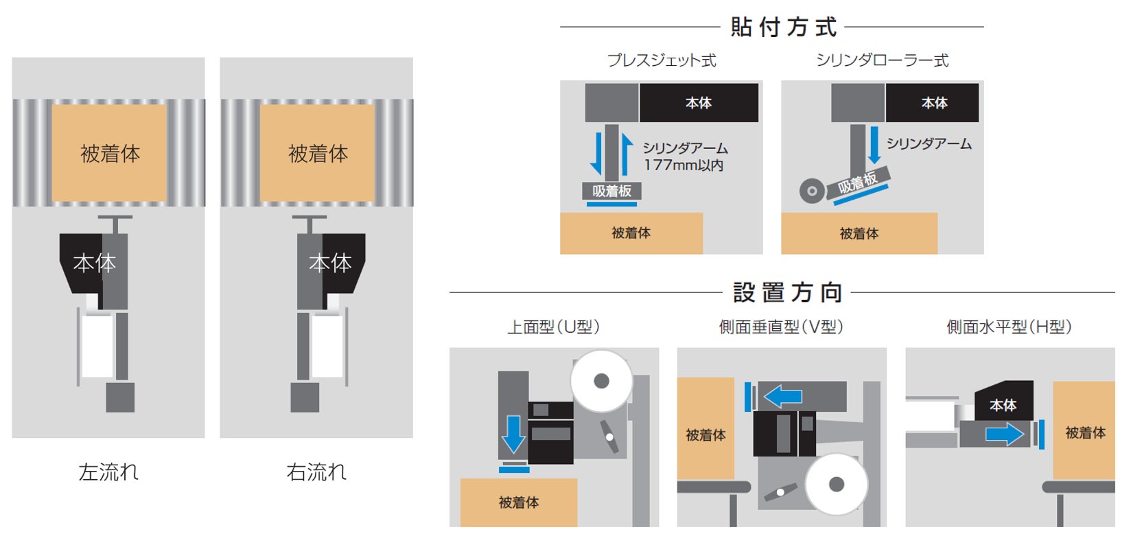 ●用途に合わせた「貼付方式」と「設置方向」を選択可能