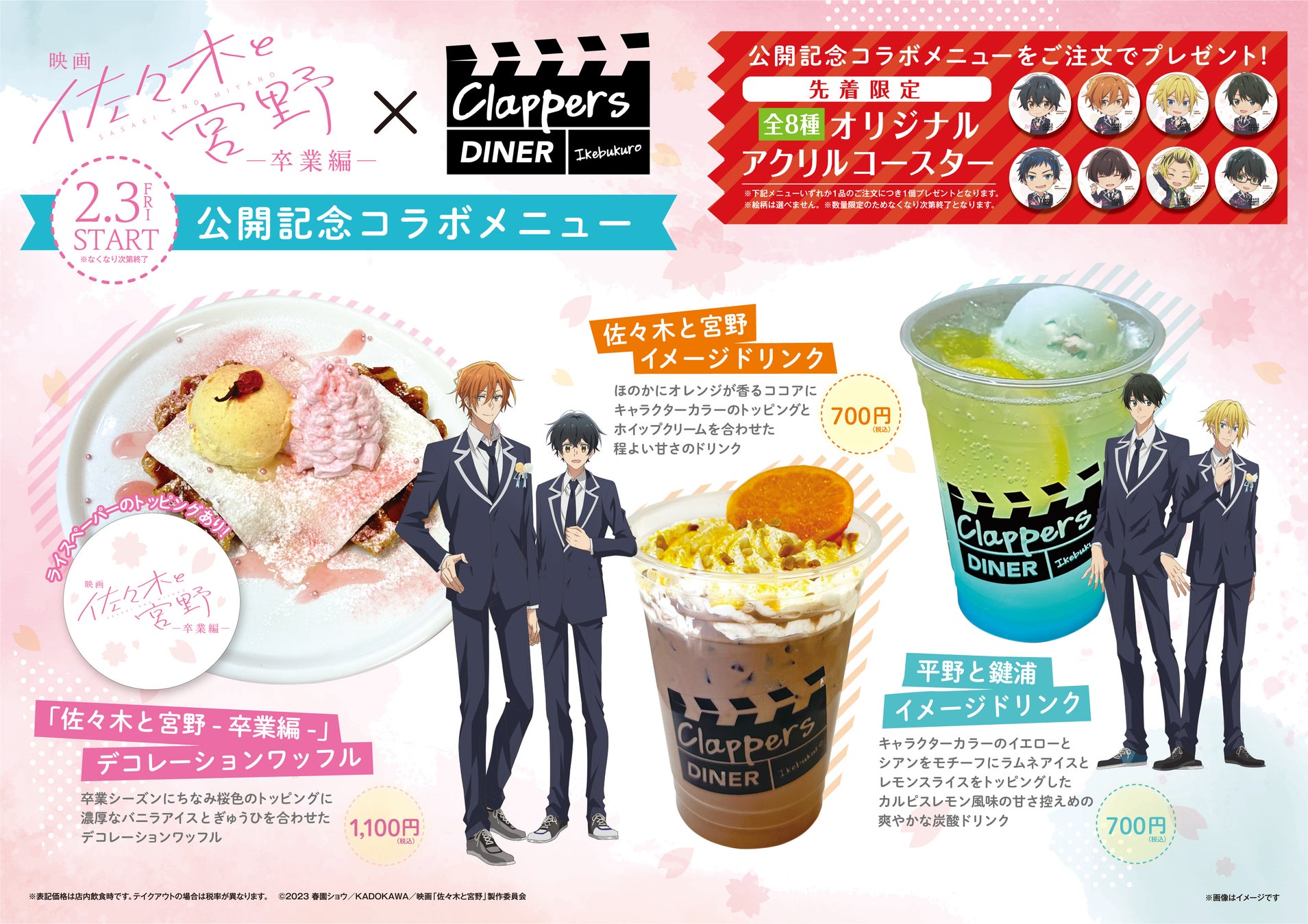 映画「佐々木と宮野―卒業編―」 公開記念 グランドシネマサンシャイン 池袋5Fカフェ「クラッパーズダイナー」にて2/3(金)よりコラボカフェ開催!先着限定の購入者特典も!