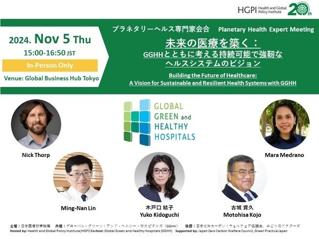 特定非営利活動法人日本医療政策機構(HGPI)(事務局:東京都千代田区、代表理事:黒川清)プラネタリーヘルスプロジェクトは、昨年、グローバル・グリーン・アンド・ヘルシー・ホスピタルズ(GGHH)ネットワークの正式メンバーとなりました。GGHHは、80カ国以上から1750以上のメンバーを有する国際的な組織で、より健康で持続可能な未来を実現するために、医療分野の変革を目指しています。GGHHは、病院、医療施設、および保健医療システムの環境への影響を減らし、公衆衛生と環境の健康を促進することを推奨しています。また、「リーダーシップ」「化学物質」「廃棄物」「エネルギー」「水」「交通」「食品」「医薬品」「建築物」「調達」という10の相互に関連する目標を通じて、メンバーの持続可能性への取り組みをサポートし、革新的なツールやリソースを提供しています。