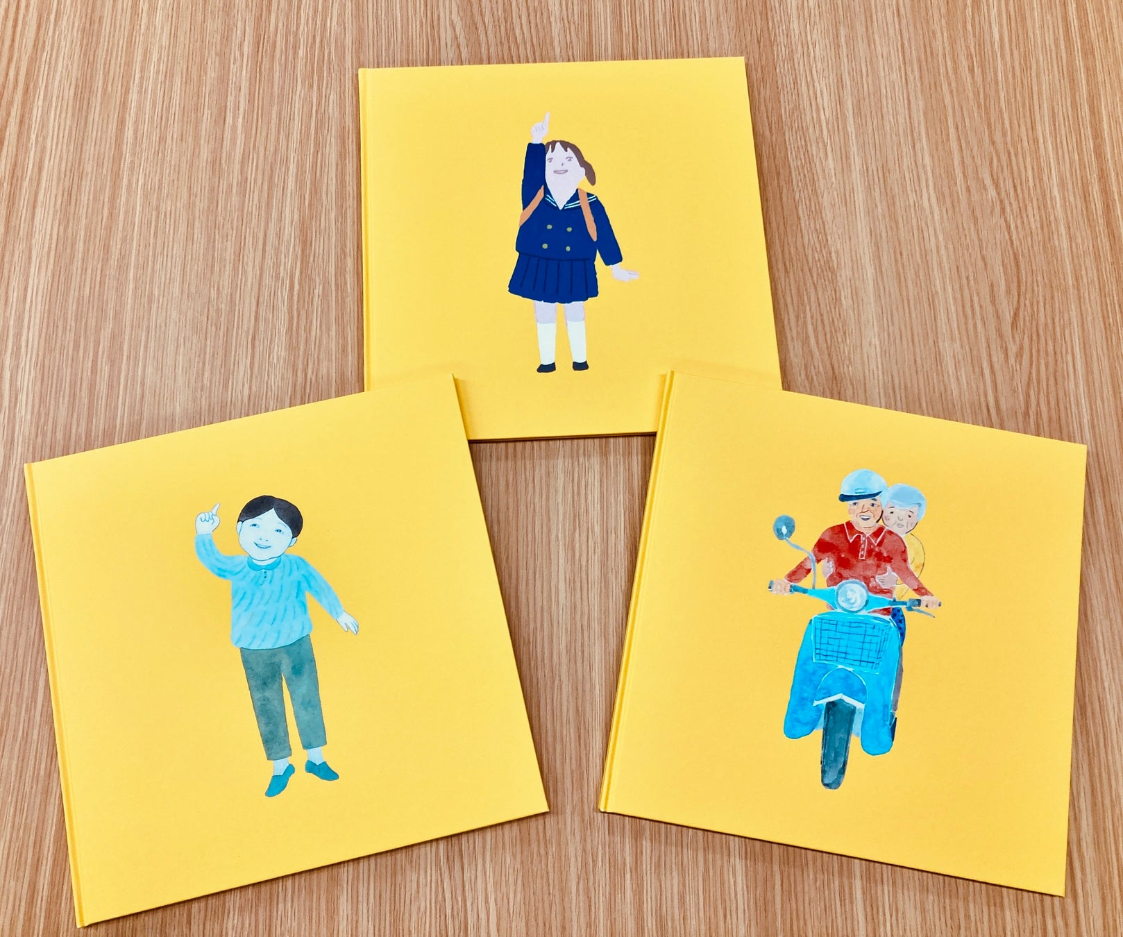 それらの作品をプロのコピーライターとイラストレーターにより30cmの正方形サイズのオリジナル絵本に装丁し、ご本人にお届けいたします。ご家族やご友人にもお配りいただけるよう、ご本人のエピソードの絵本は10冊お届けします。
