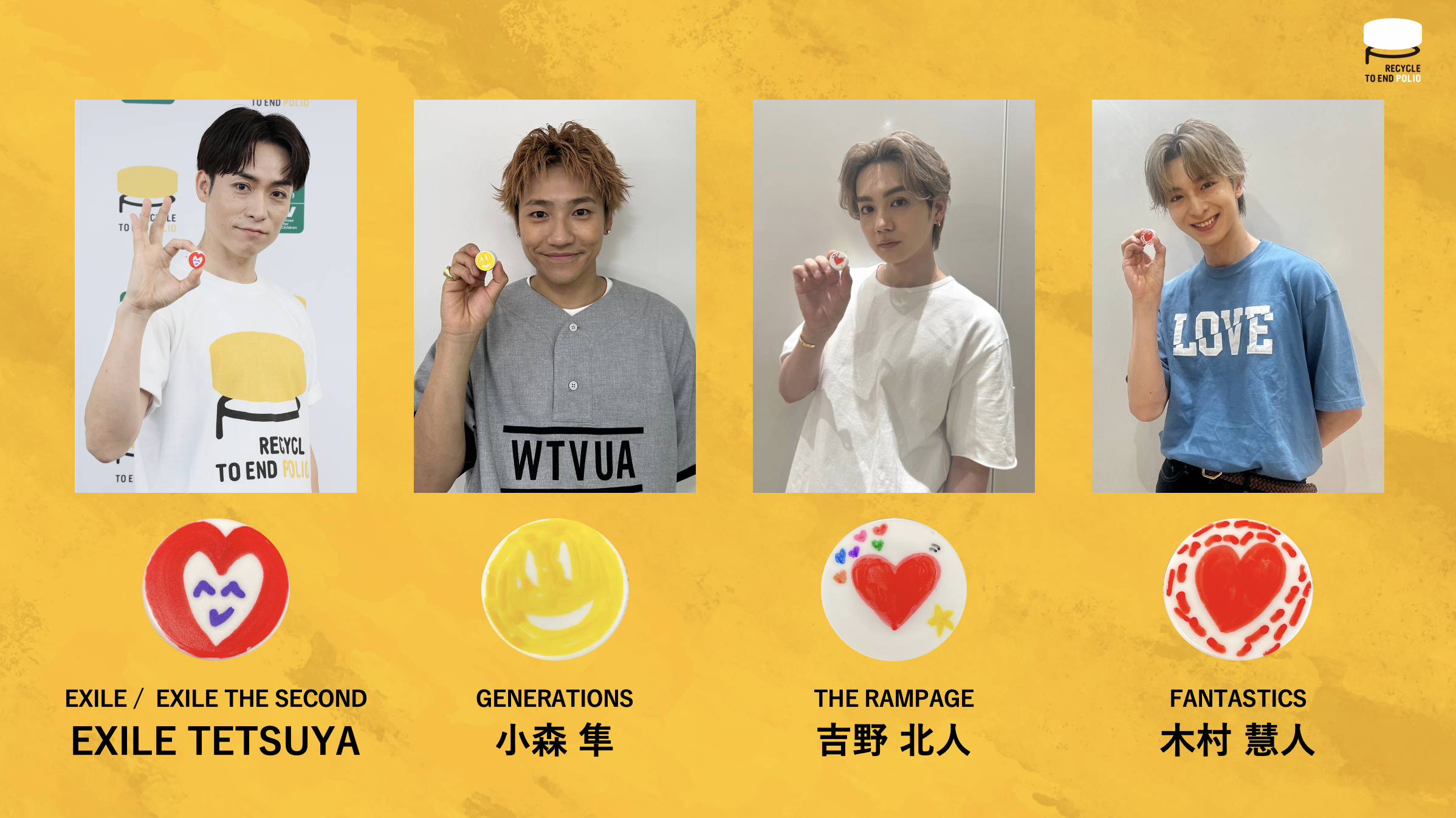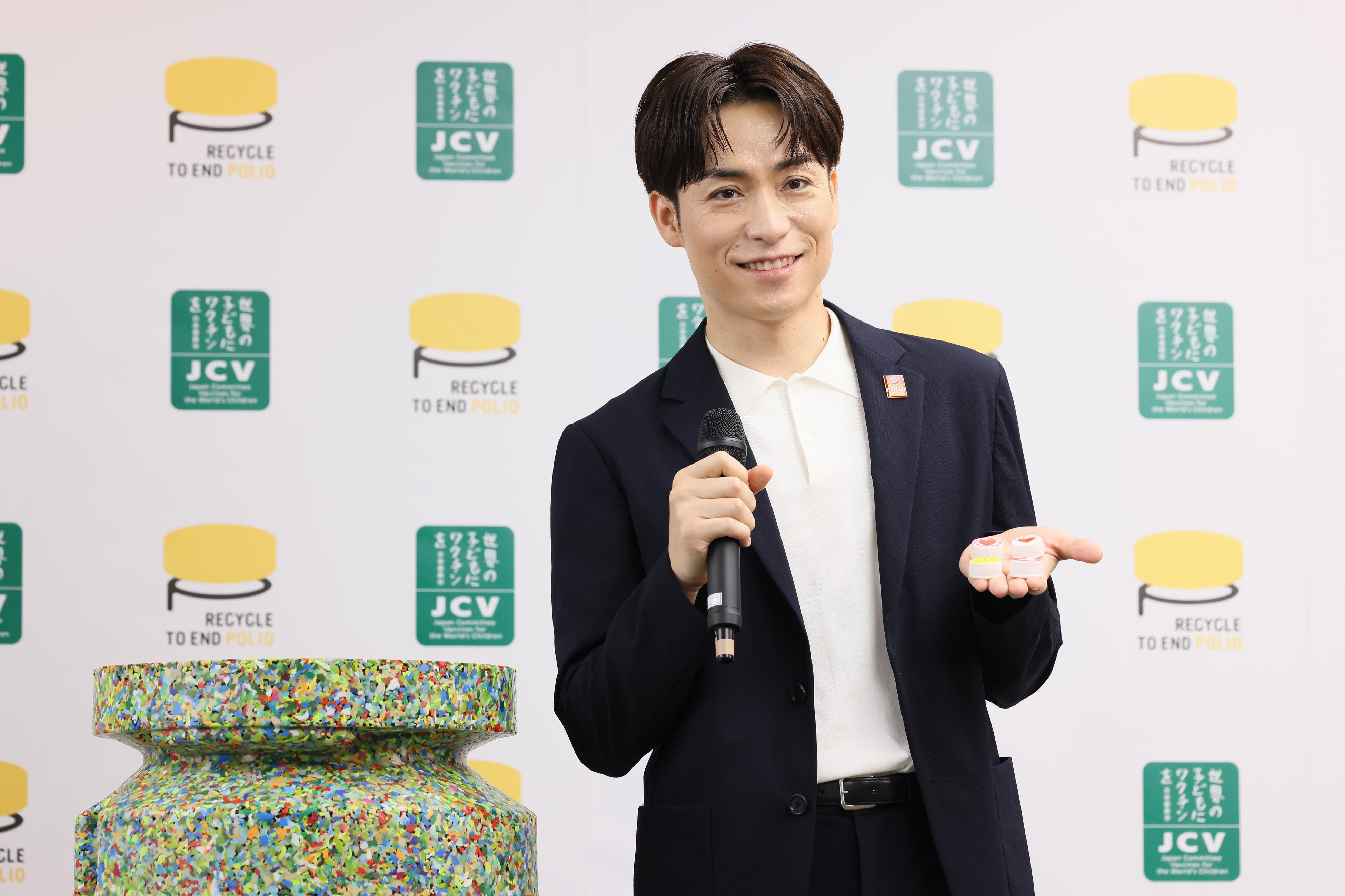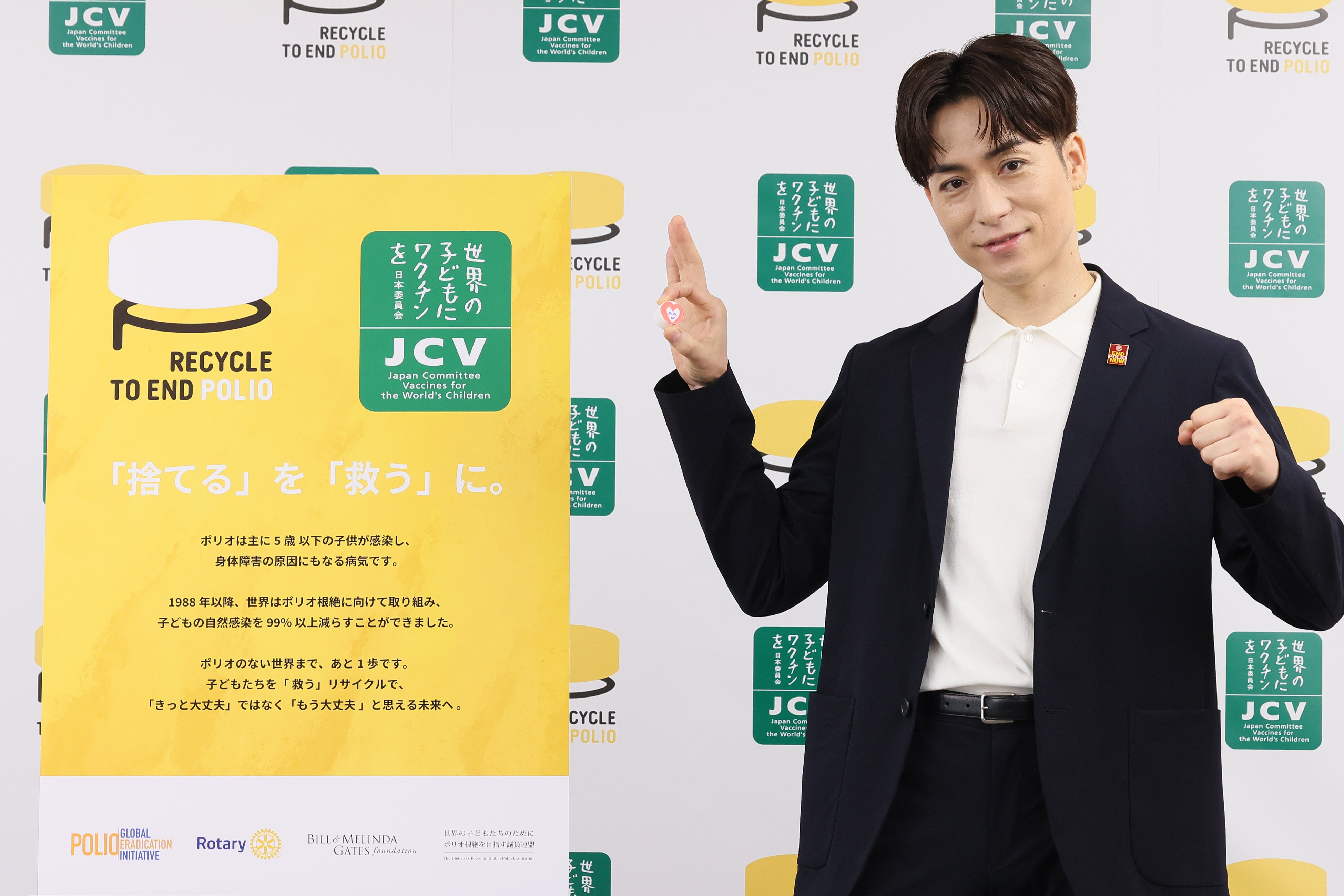 「ポリオは日本ではあまり聞き慣れませんが、世界ではいまだに苦しむ子どもたちも多く、ワクチンが行き渡っていない国もあるという現状を知り、この活動を通して色んな人にポリオウイルスについて知っていただきたいです。今こそ、日本と世界が一丸になって全ての子どもたちを守り、”誰も取り残さない”世界を目指していきたいです。」と、様々な活動を通して子どもたちと触れ合う機会の多いTETSUYAさんならではのコメントを述べました。また、一部のLDH主催のライブ会場、EXPG STUDIO、AMAZING COFFEE、居酒屋えぐざいるにもリサイクルボックスが設置されることを受け、「僕たちが関わる場所にたくさんボックスを設置し、LDH全体で盛り上げていきたいです」と力を込めました。