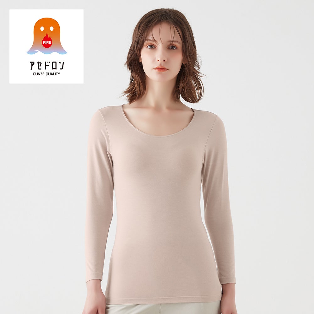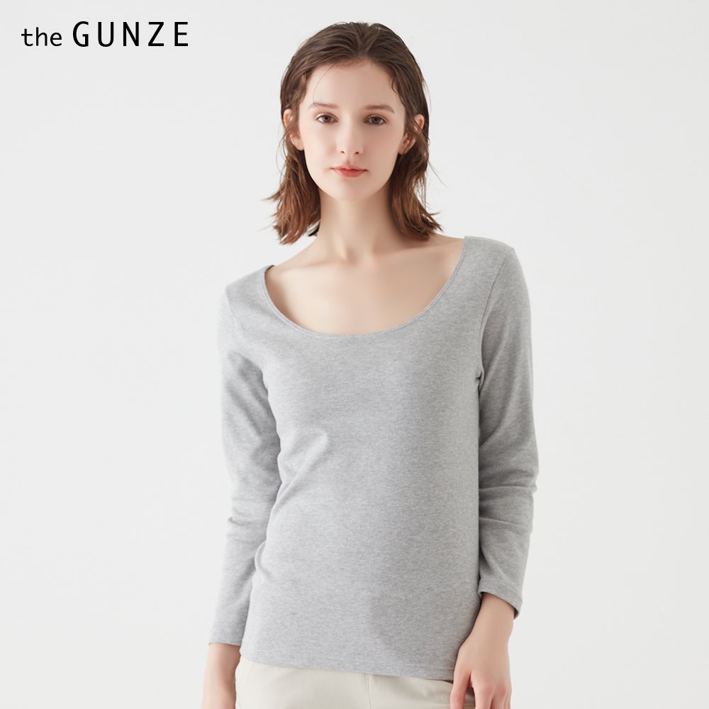 ■【the GUNZE】冬の綿100% 8分袖インナー(えりあき広め)