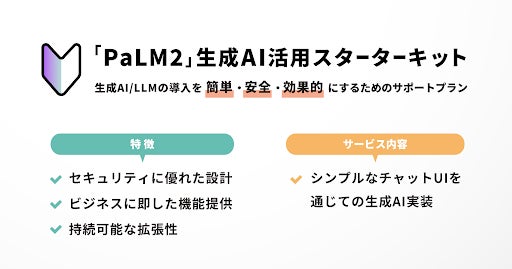 Google Cloud の大規模言語モデル「PaLM 2」を活用したスターターキットは、生成AI/LLMの導入を「簡単・安全・効果的」にするための全方位的なプランです。約1か月で基本的なAI環境を構築し、即座にビジネスに活用できます。