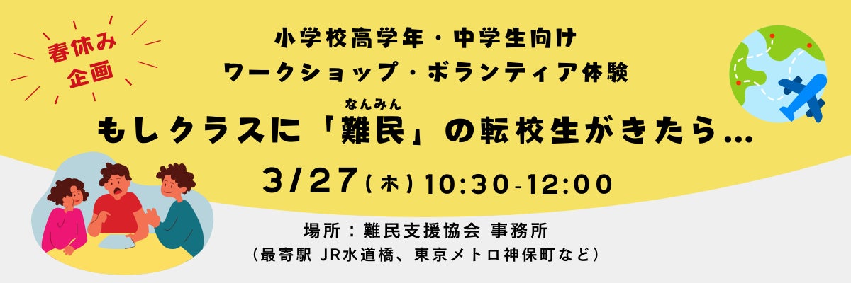 小学校高学年・中学生向けワークショップ・ボランティア体験”もしクラスに「難民」の転校生がきたら…” 開催のお知らせ