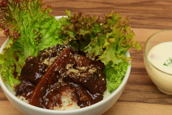 お腹いっぱいニコラ丼!フレンチと日本の融合! 牛の頬肉の赤ワイン煮込みをのせた、ニコラ丼登場!