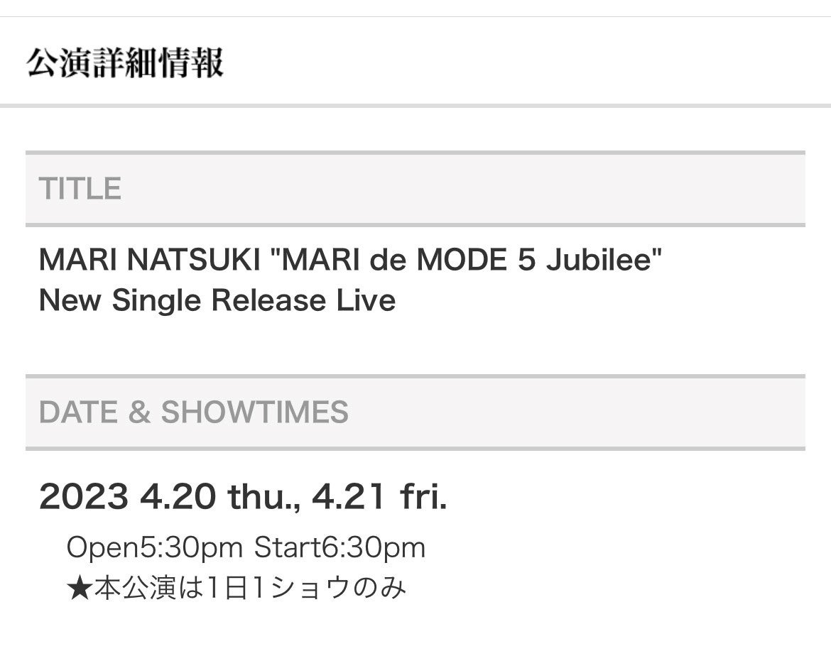 MARI NATSUKI "MARI de MODE 5 Jubilee" New Single Release Live