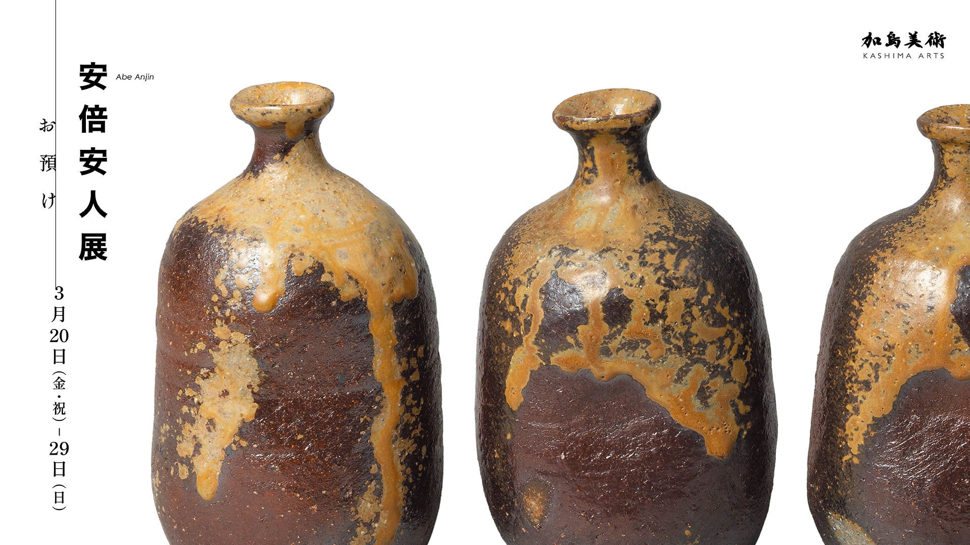 株式会社加島美術(東京・京橋)では、2026年3月20日(金・祝)から3月29日(日)まで、備前焼の鬼才・安倍安人による個展「安倍安人展―お預け―」を開催いたします。本展は、加島美術での四度目の安倍安人展となります。加島美術にて開催する安倍安人の個展では初出品となる《お預け徳利》をはじめ、新作を中心に48点をご紹介いたします。
