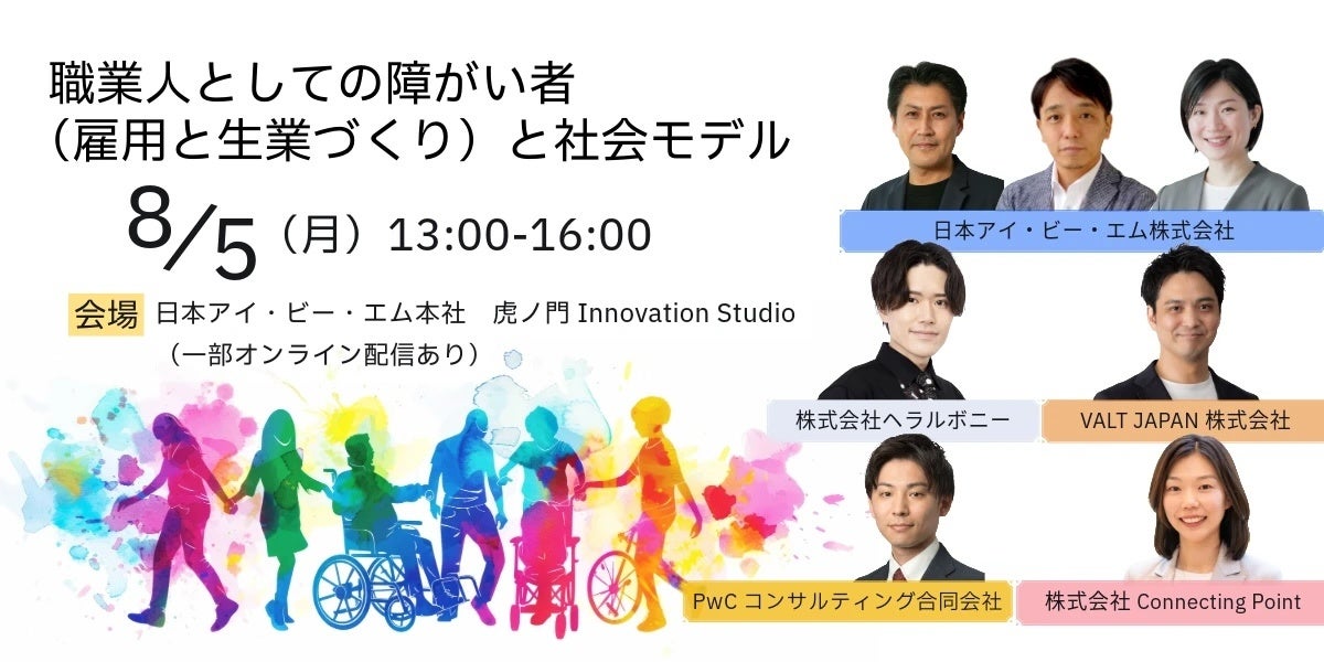 登壇企業(予定): 日本アイ・ビー・エム株式会社、PwCコンサルティング合同会社、株式会社ヘラルボニー、VALT JAPAN株式会社、株式会社Connecting Point