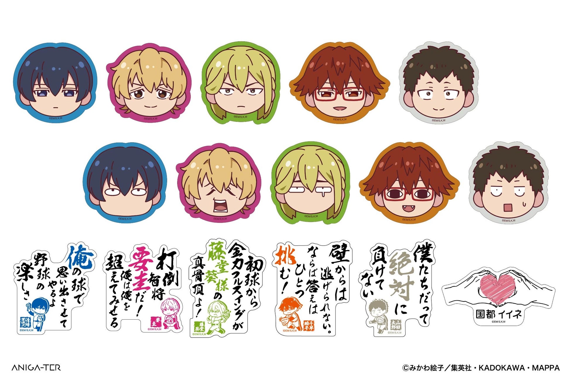 ・名言ダイカットスマホステッカー:H65mm×W58mm(清峰葉流火)、H63mm×W56mm(要 圭)、H70mm×W54mm(藤堂 葵)、H67mm×W56mm(千早瞬平)、H68mm×W54mm(山田太郎)