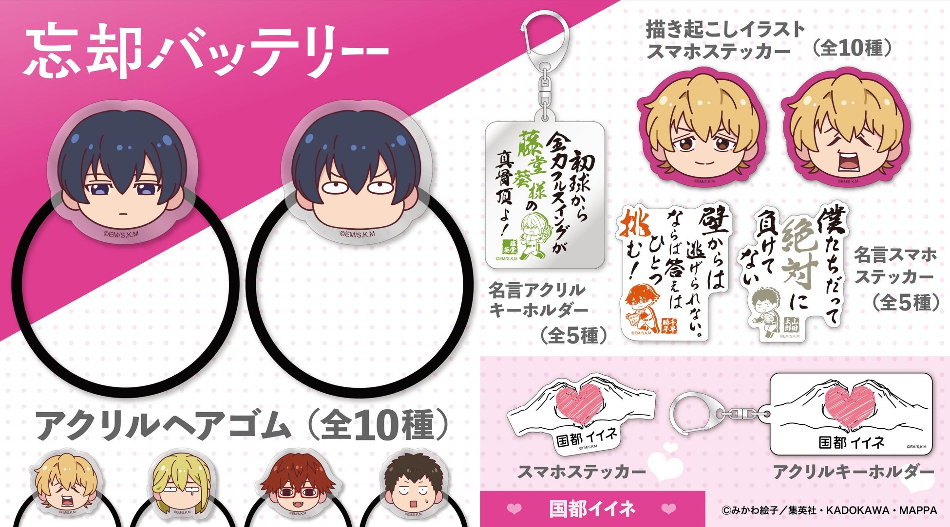 TVアニメ『忘却バッテリー』より、描き起こしイラストやキャラクターの名言をデザインしたアクリルグッズなど新商品が登場!