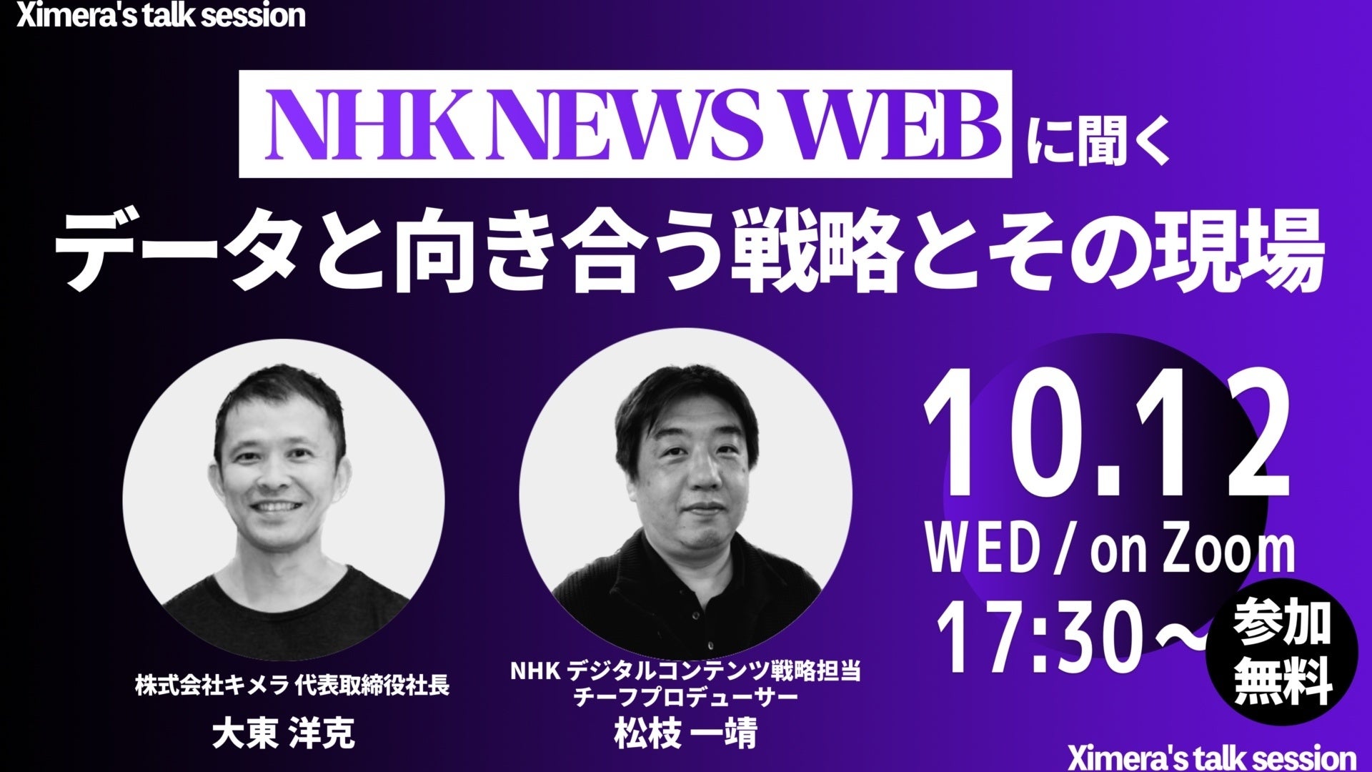 キメラ、NHK NEWS WEBを迎えて「データと向き合う戦略とその現場」を語るイベントを10月12日に開催