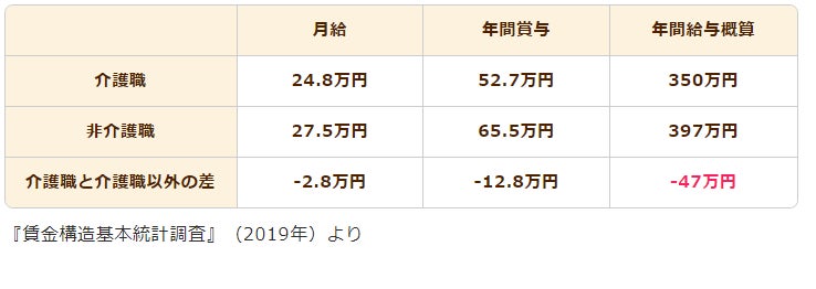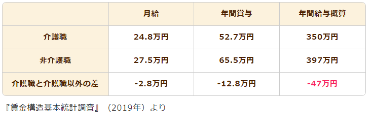 そうした不満をため込み介護業界から離れてしまう。また、これから介護業界で働く事を考える人も、その賃金の低さから求人への応募をためらってしまうという現状があります。