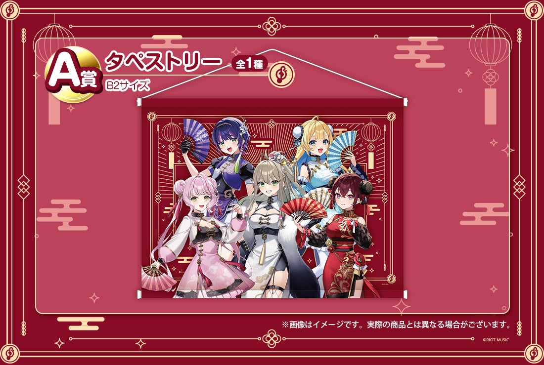描き下ろしチャイナドレス姿の5名が集合したタペストリー。