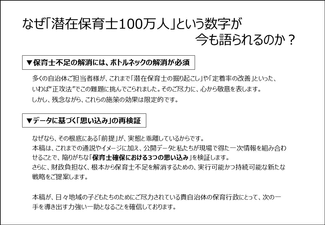 保育士不足対策の「思い込み」をデータで覆す!自治体の財政負担ゼロで実現する、持続可能な人材確保戦略を提言。〜現場の一次情報から見えた“不都合な真実”をまとめたホワイトペーパーを無料公開〜