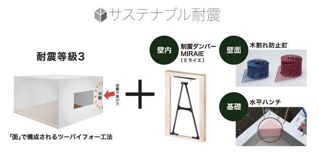 ■北洲ハウジングの「サステナブル耐震®」(耐震等級3+制震装置)
