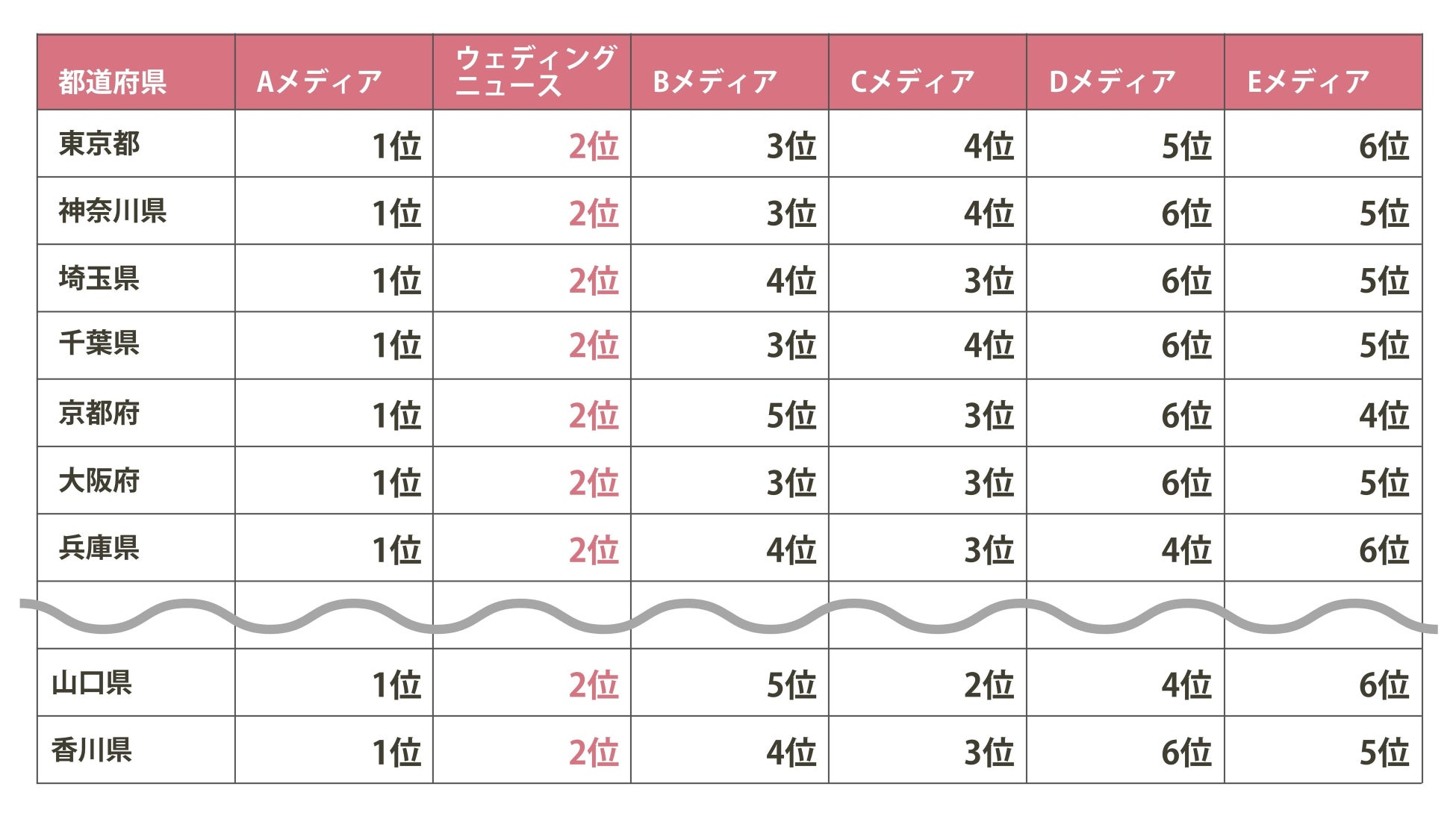 ウェディングニュースは2016年に開始した後発の結婚式場予約プラットフォームですが、現在、24の都道府県で2番目*に掲載数の多い予約プラットフォームとなっています。