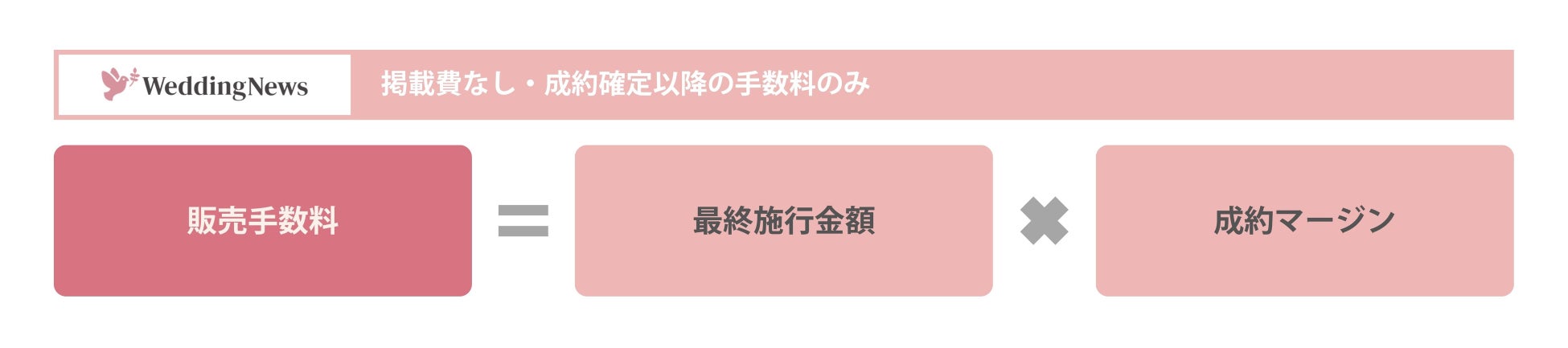 ビジネスモデルは従来の広告掲載型のメディアとは違って、完全成果報酬型のビジネスモデルを採用しています。ウェディングニュースを経由して予約した新郎新婦が、最終的に結婚式を契約し、実施したその総額の一部を手数料としていただくモデルです。