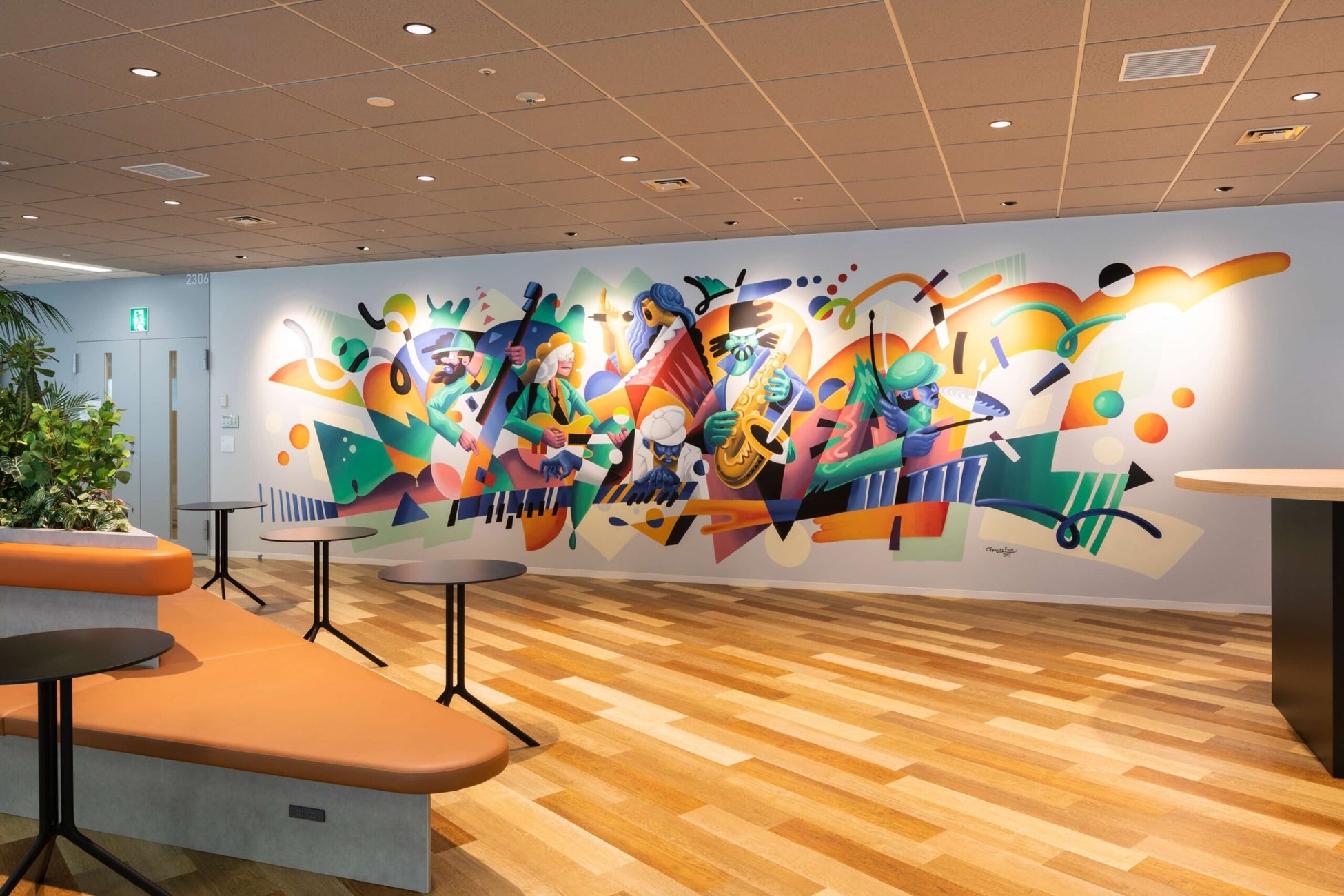弊社では、自社ならではの企業文化を感じる場所であってほしいという社員や経営者の思いが反映されたオフィスにするために、【アーティストがオリジナルで制作するウォールアート】を事業のサービスとしてコロナ前より提供してまいりました。(https://wasabi-artdesign.com/)