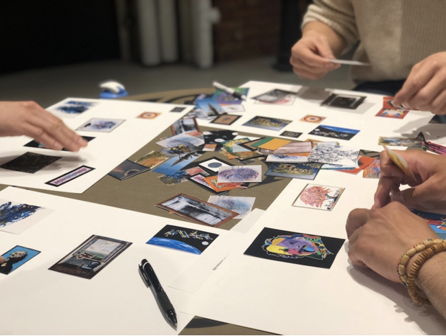 アートのカードを使って、「今の会社を表す美術展」および「未来の会社を表す美術展」をグループで作り、タイトルをつけていただきます。今と未来を比較することで、会社の目指す方向性や課題、ビジョンが明確になります。