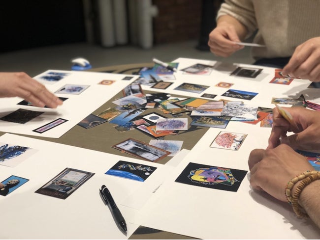 アートのカードを使用しながら社員同士でワークを行ううちに、チームと会社に対する理解が直感的に深まります。このワークショップには担当アーティストも参加し、社員の自社に対する想いを聞くことでウォールアートの制作へと活かしていきます。