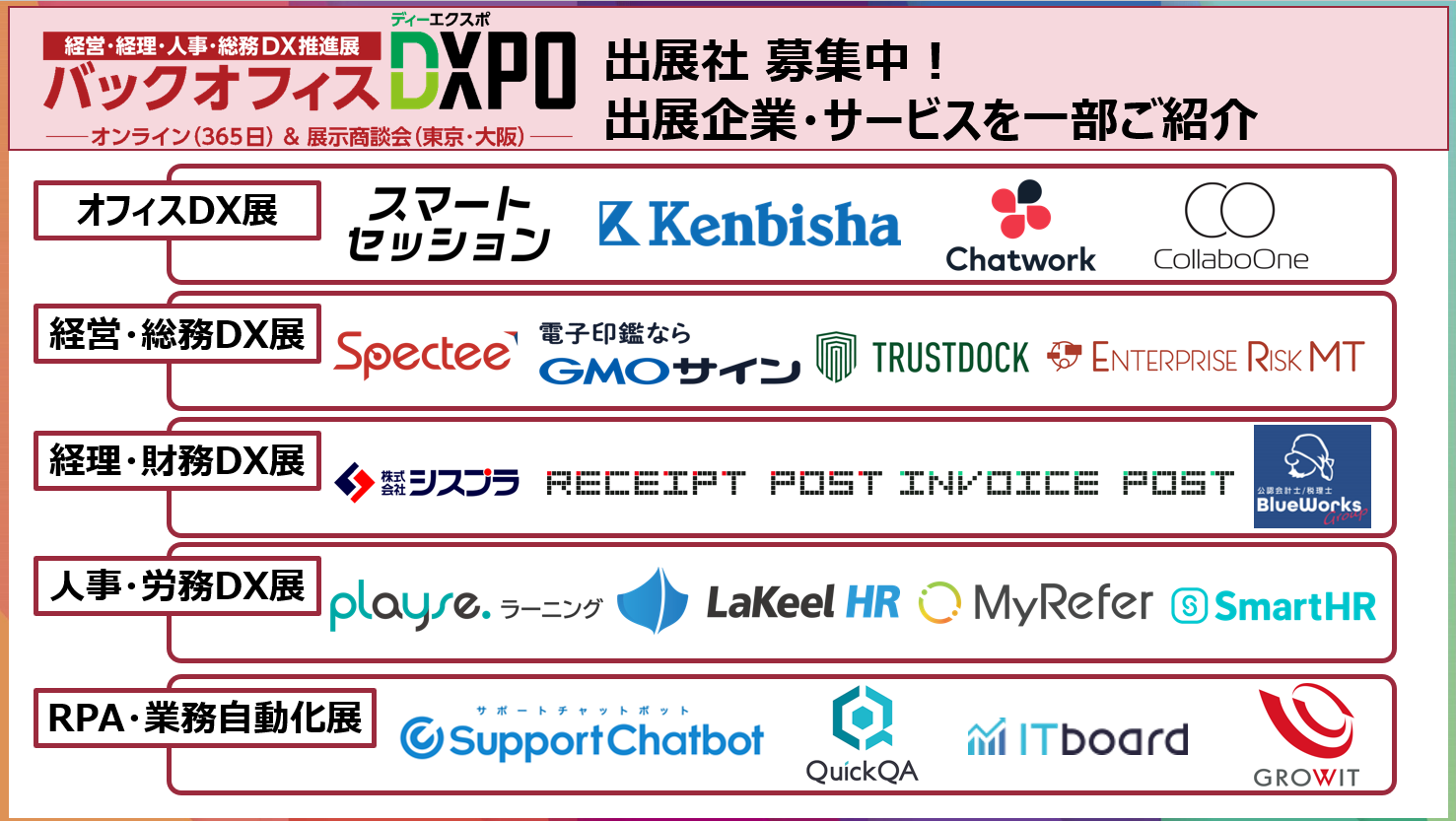管理部門のDXを加速させる展示会【バックオフィスDXPO】具体的な出展社の顔ぶれなどを紹介する説明会をオンライン開催!