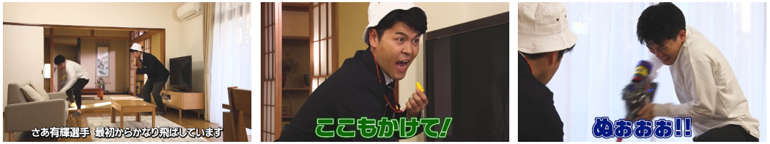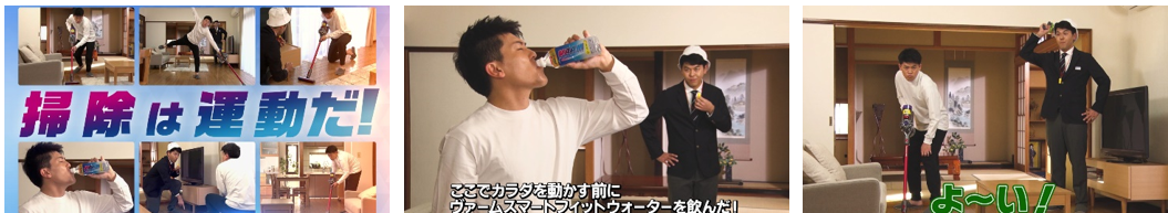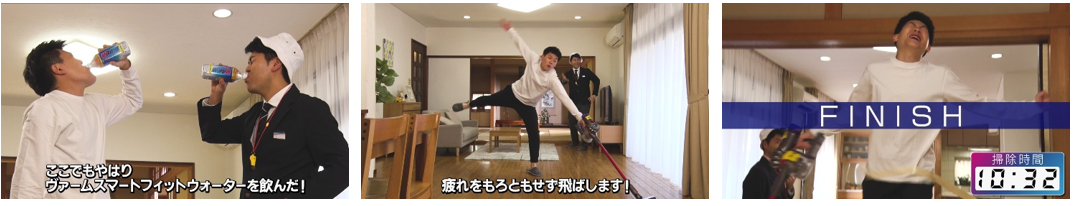 ナレーター「さあ、掃除機タイムレースに挑むのは、土佐有輝選手。ここでカラダを動かす前にヴァームスマートフィットウォーターを飲んだ!相当なやる気だ!」