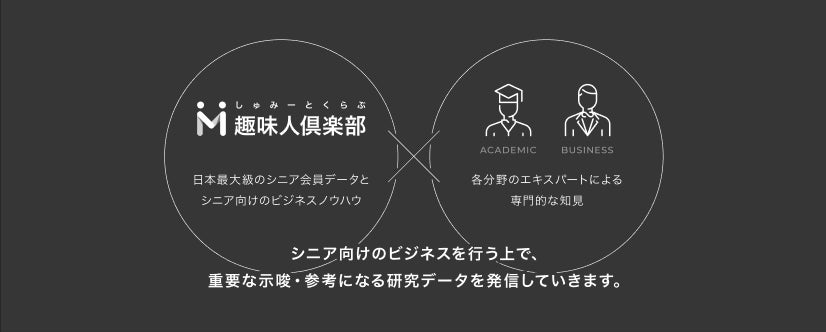 「趣味人倶楽部」を含めたオースタンスが運営するサービスや、行政・企業との協業で得た、膨大なシニアの行動データや、事業開発やマーケティングの課題解決の知見を元に、シニア領域に特化した専門家に参画いただき、共同で研究を行います。