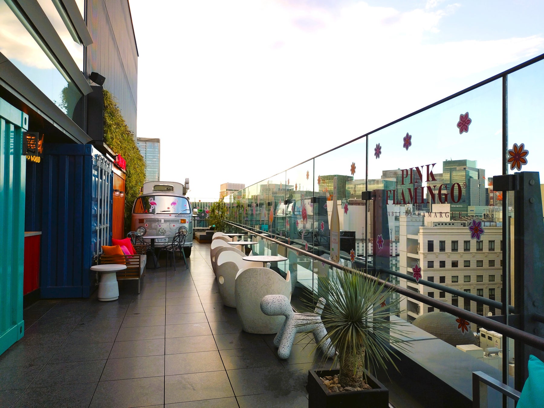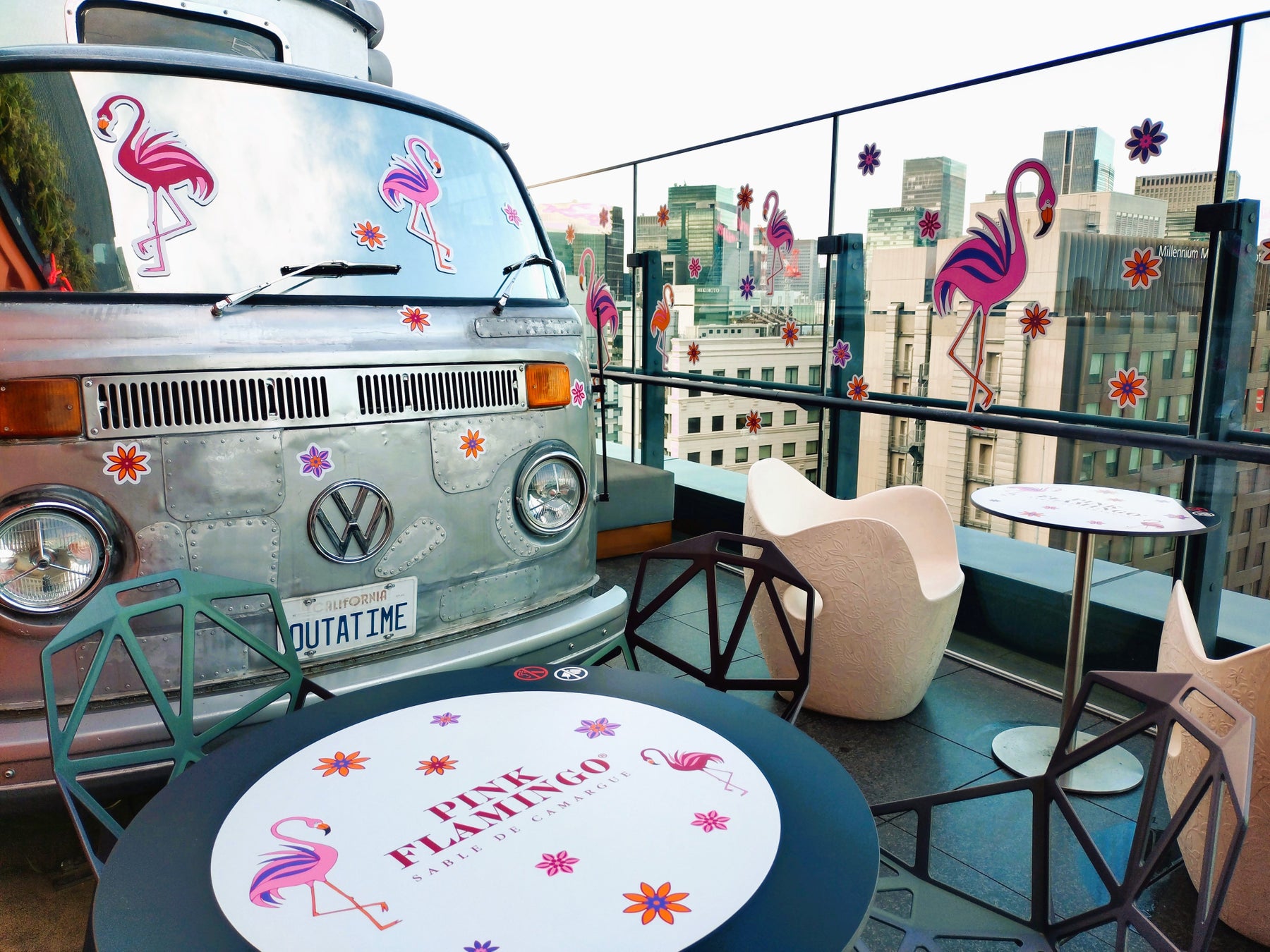 イベント期間中はPink Flamingoブランドのイメージで、会場全体をポップでカラフルな空間に仕上げます。東銀座を見渡すルーフトップバーで春のあたたかな日差しと心地よい風を感じながら、Pink Flamingoを片手に非日常のひとときをお過ごしください。