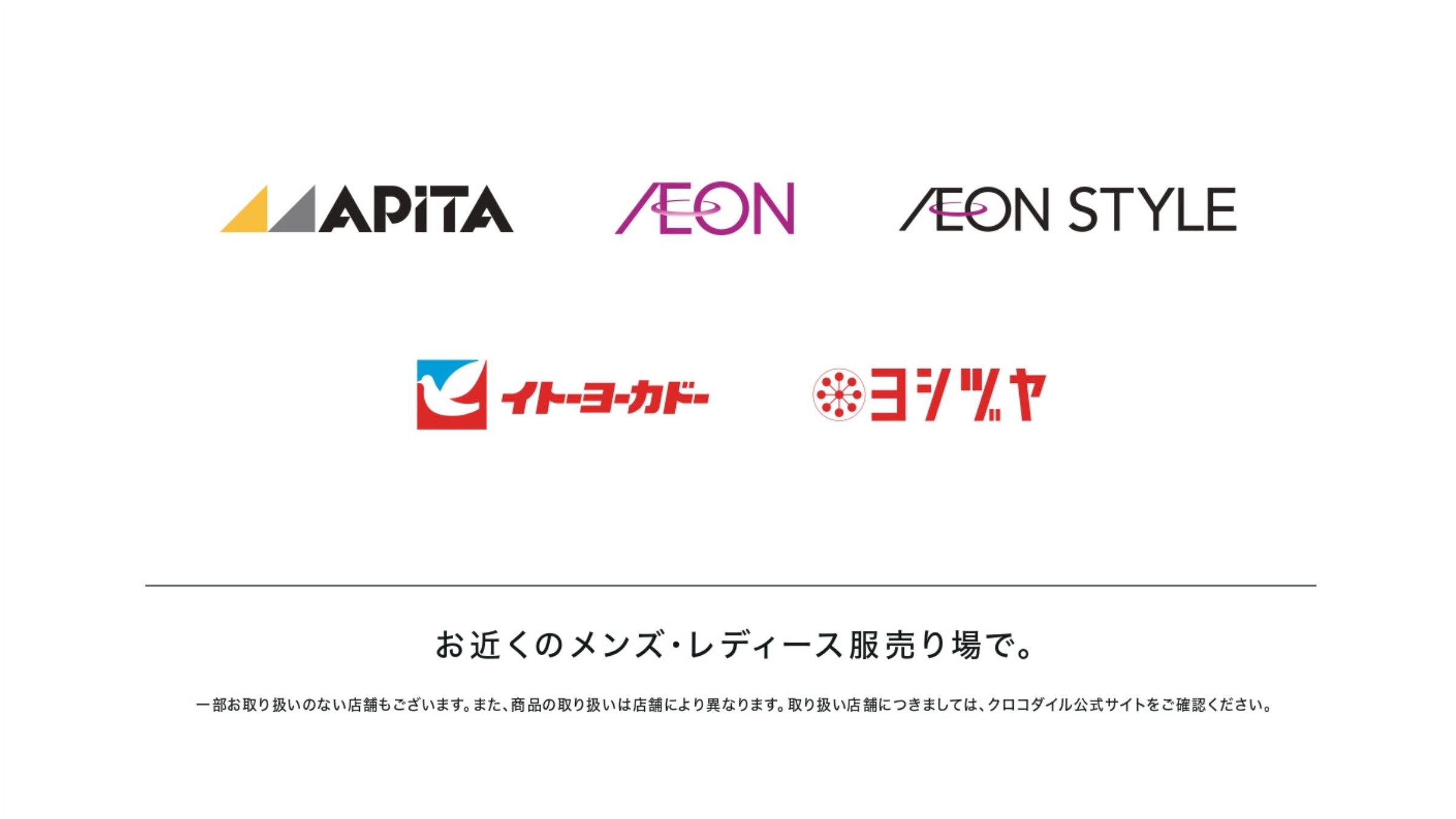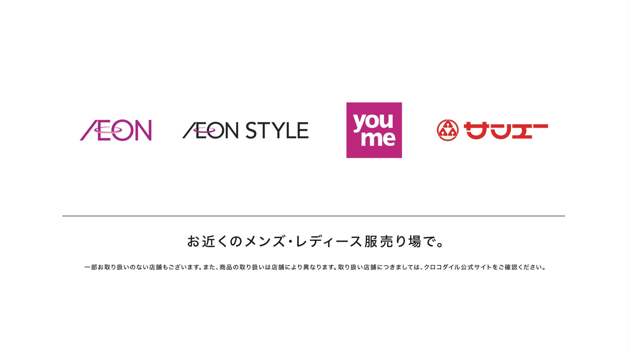 クロコダイルがどこで販売しているのかが分かり易いよう、放映エリア内での販売店企業各社様のロゴを訴