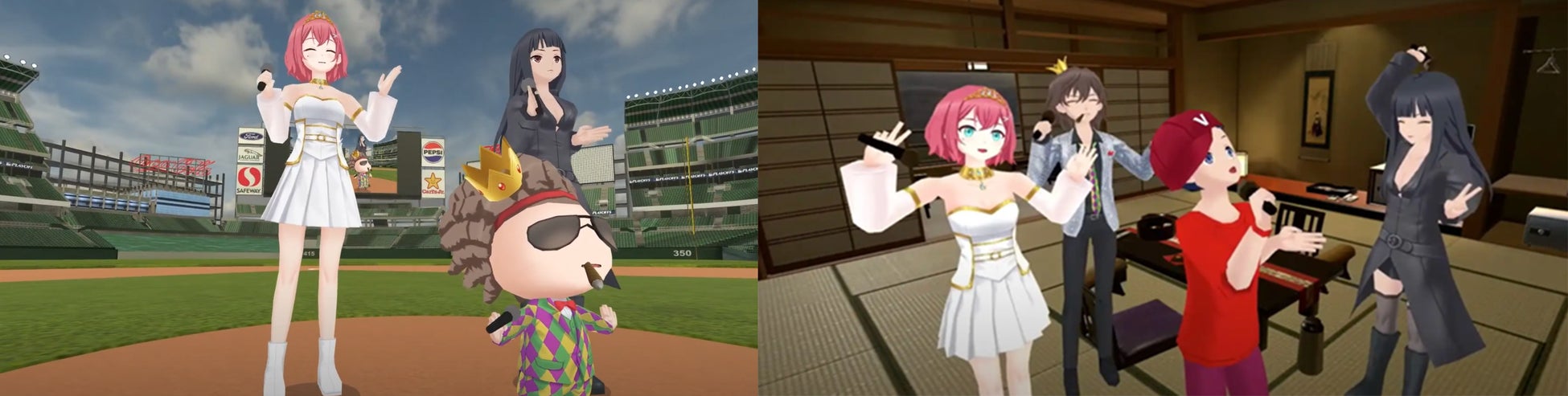 「カラオン」は、日本語でありながら世界中の人々に広く知られている言葉であり、世界中で愛されている日本発祥の娯楽「カラオケ=KARAOKE」を通して、誰もが数分で気軽にVTuberデビューを果たせる、次世代のエンターテインメントプラットフォームです。Meta Questの強力なVR技術と、当社独自開発の没入型カラオケシステムを融合させることで、従来のカラオケの概念を大きく覆す新たな体験を提供します。誰もが一流ミュージシャンのように、大観衆を前にして、スタジアムやライブハウスをはじめ、実在の観光地などを舞台に、カラオケライブを無料で行えます。