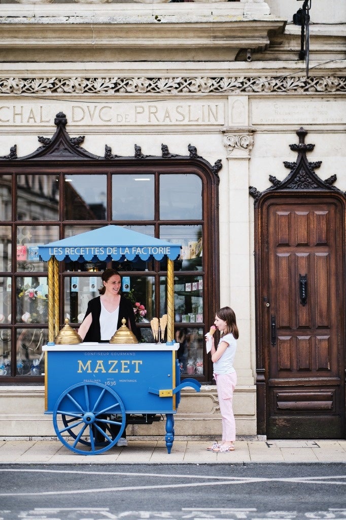 マゼの歴史的なメゾンはパリから約100km南下したモンタルジという街にあります。プラズリン、ヌガー、チョコレートをはじめとするコンフィズリー(砂糖菓子)の製造、販売をしています。この歴史ある美しい建造物は、モンタルジの観光スポットとしても有名です。