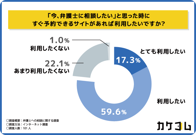 弁護士への相談を今すぐ予約できるサイトがあれば利用したいと76.9%が回答!