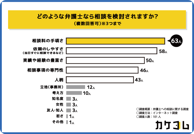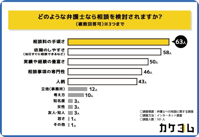 そこで、「どのような弁護士なら相談を検討されますか?(複数回答可)」と質問したところ、