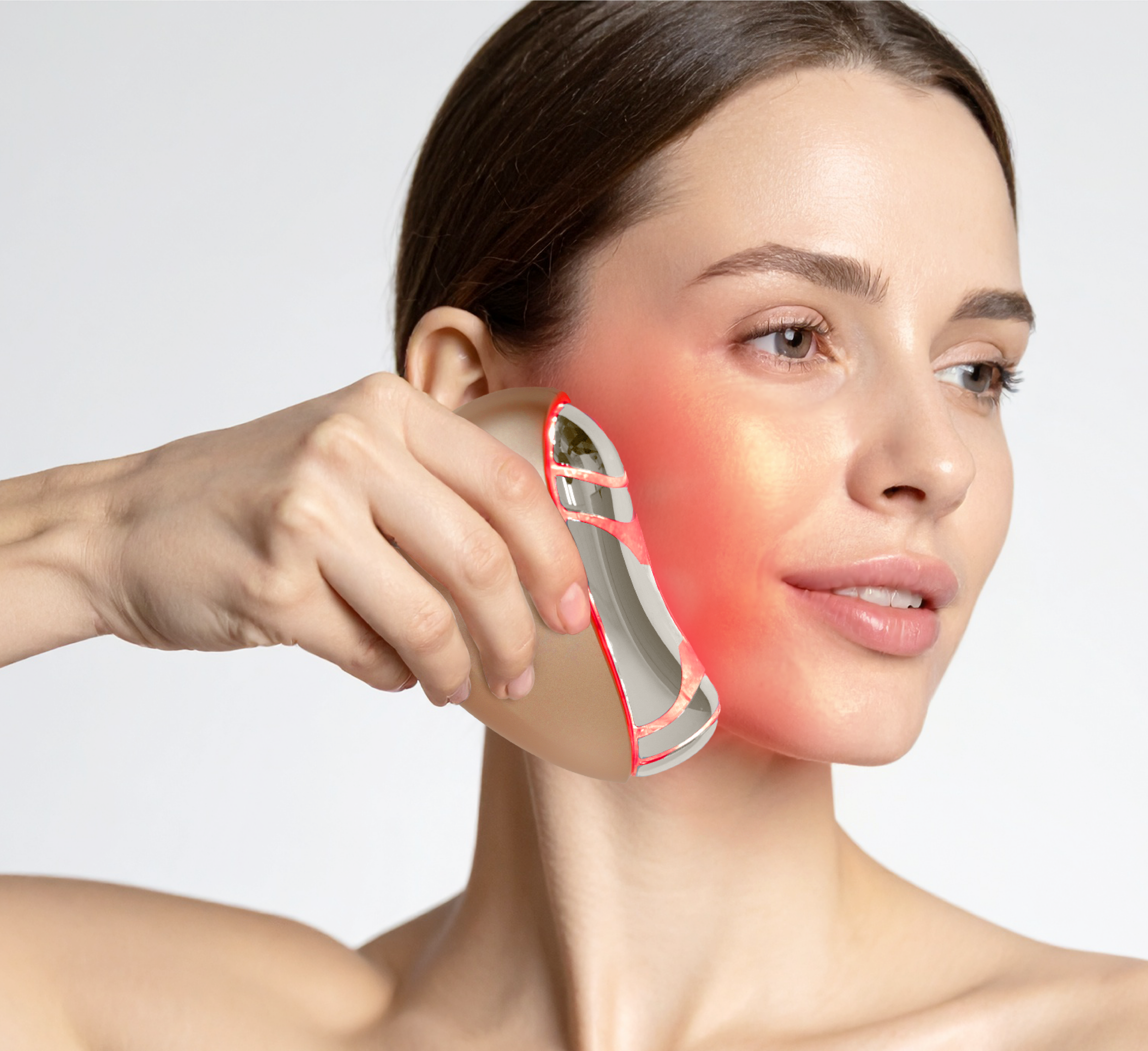 なめらかな電極部が肌にやさしく密着し、凹凸のあるフェイスラインにもフィットしやすい設計です。大小頬骨筋や、フェイスラインの印象に関わる胸鎖乳突筋など、顔まわりの筋肉に対して心地よく使用できるよう配慮されています。さらに、体の曲線に沿う形状設計により、頬やフェイスライン、首元などのさまざまな部位にフィットしやすく、日々のセルフケアを快適にサポートします。