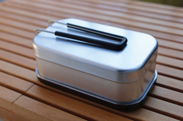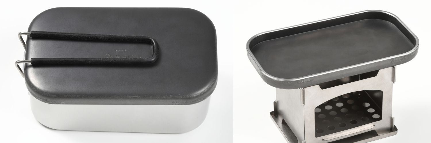 トランギア社のメスティンとシンデレラフィット。メスティンのフタとして収納できるグリルプレートです。