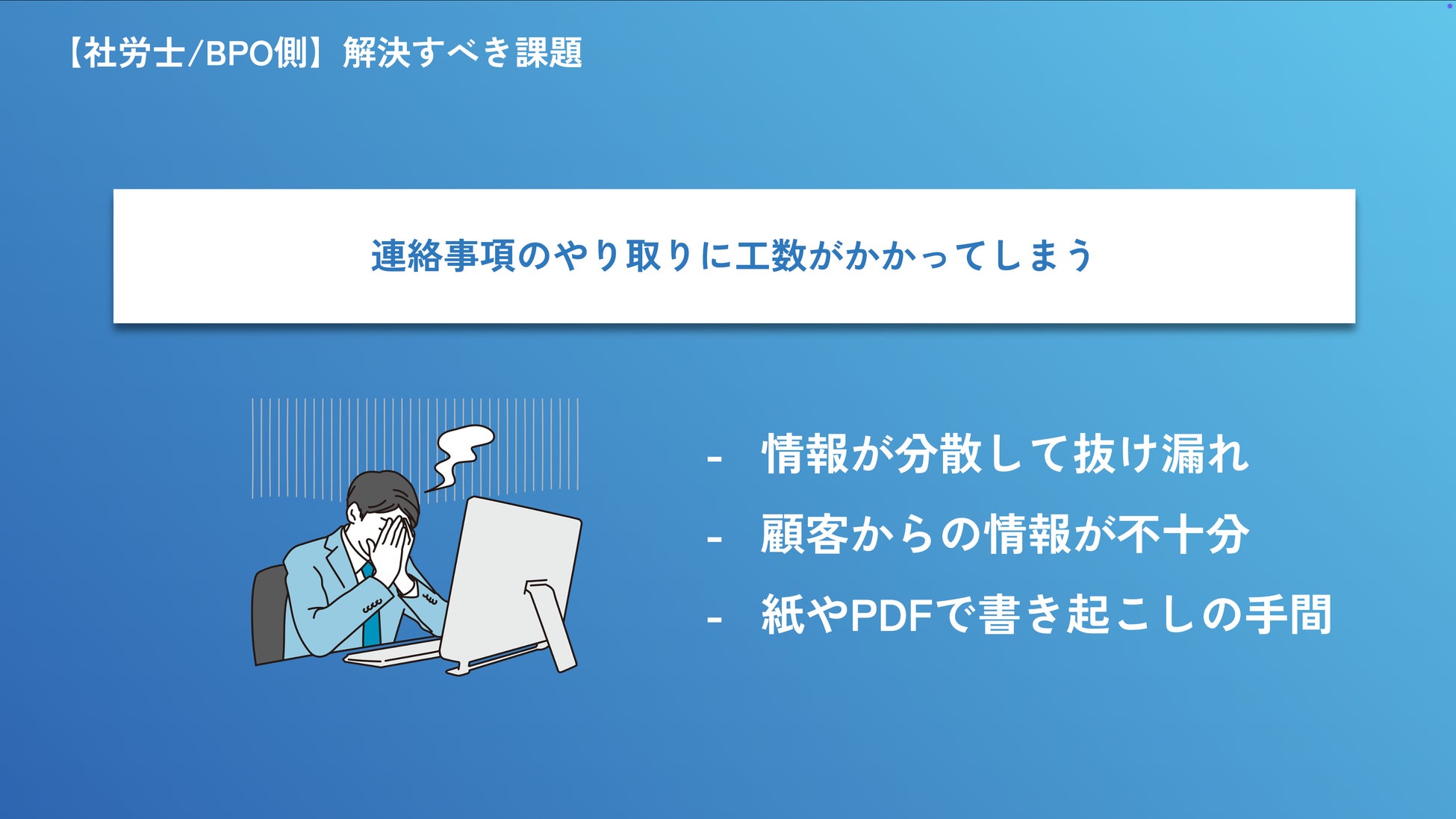 社労士/BPO側メリット:紙・PDF 連絡票の転記をなくし、デジタル化を実現
