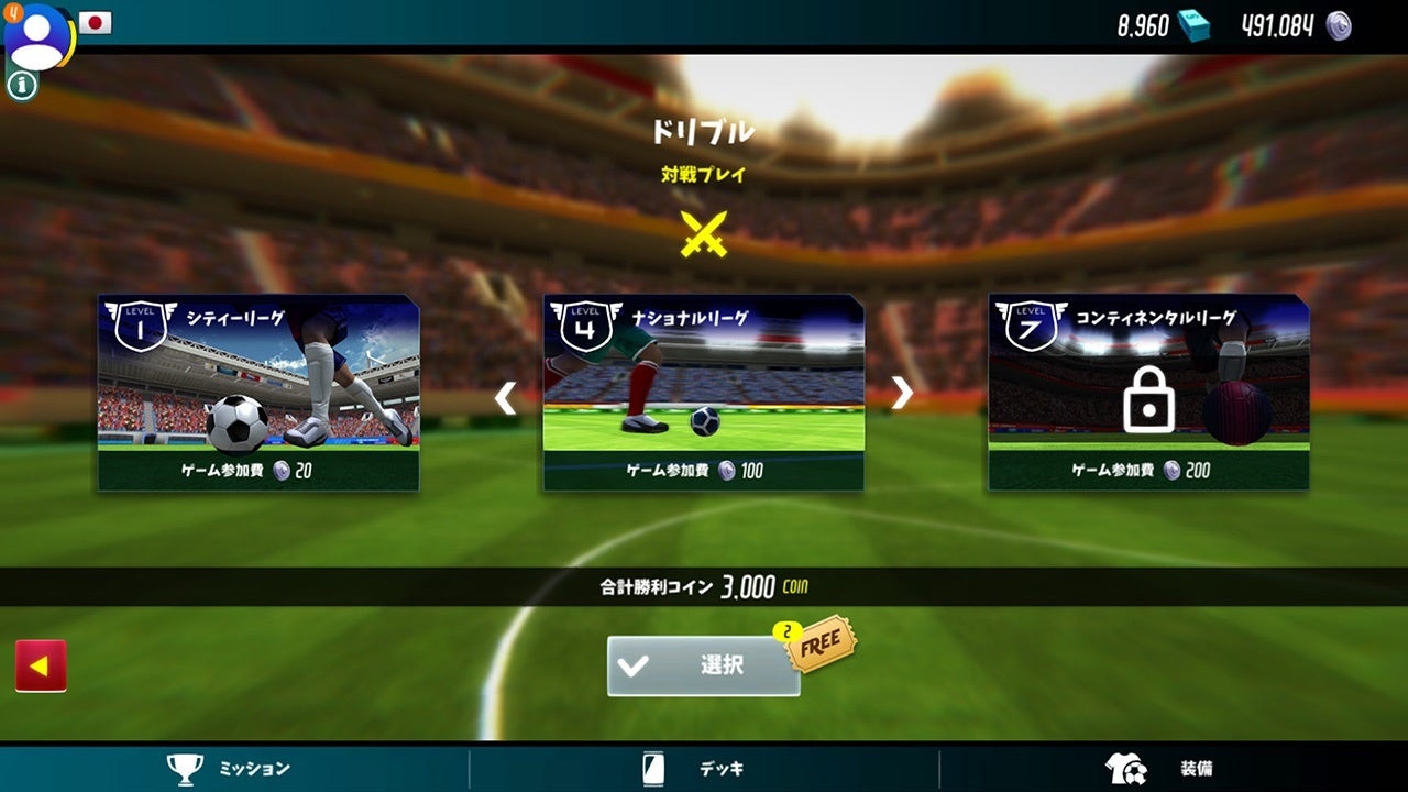 フリーキック、ドリブルゲームにデッキシステムを導入しました。是非成長の楽しさを感じてください。
