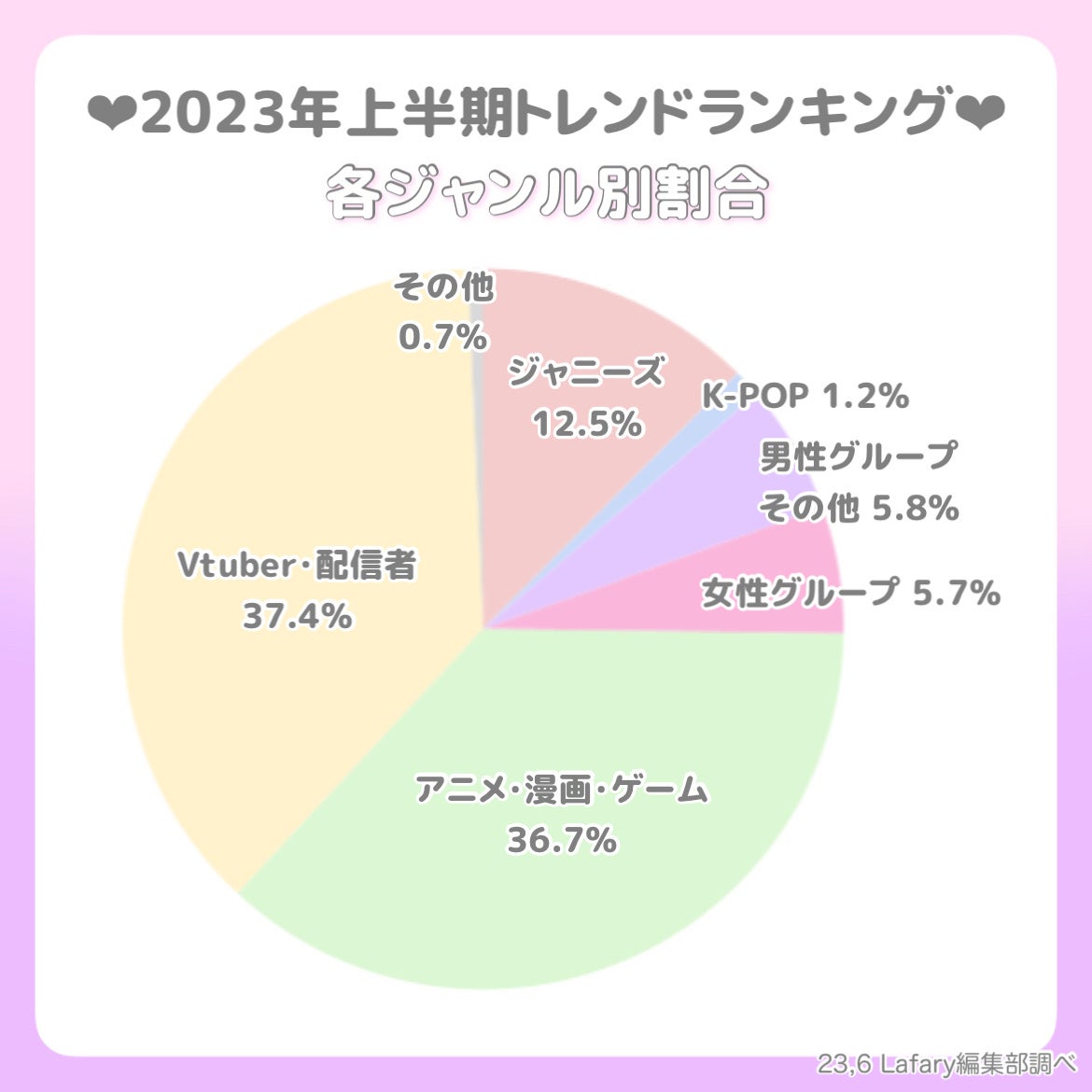 今回の調査では「アーティスト・アイドル」「アニメ・漫画・ゲーム」「VTuber・配信者」「TikTokの音源」の4部門の2023年上半期のトレンドについて調査いたしました。