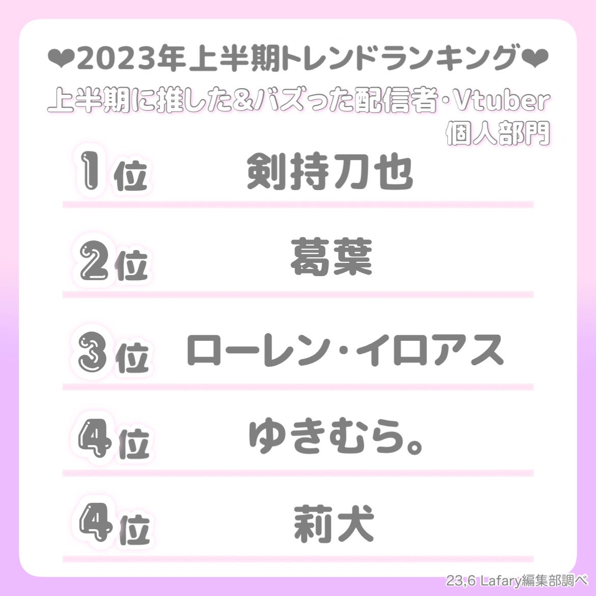配信者・VTuber部門の1位は「にじさんじ」!個人でも「剣持刀也」が1位に!