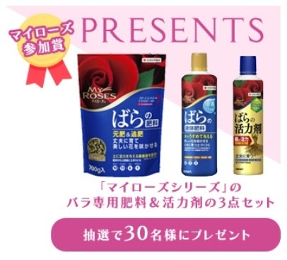 ■「マイローズ参加賞」:バラ専用肥料&活力剤 3点セットを抽選で30名様にプレゼント