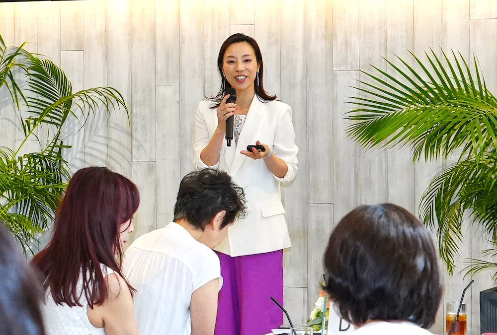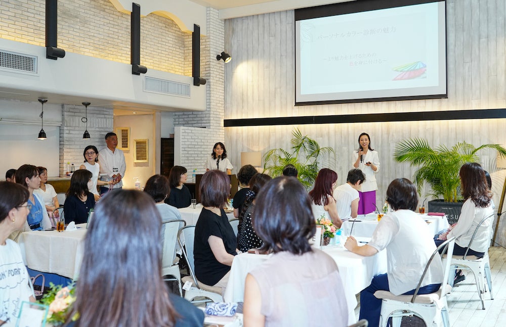 そして、外見イメージコンサルタントの内山由依子さんにご登壇いただき、「パーソナルカラー診断」についての講演を開催。内山さんは、“どう見せるか”を徹底的に追求し、ライフステージ向上に繋げるイメージコンサルタント。パーソナルカラー診断がもたらす効果などについてご説明頂きました。