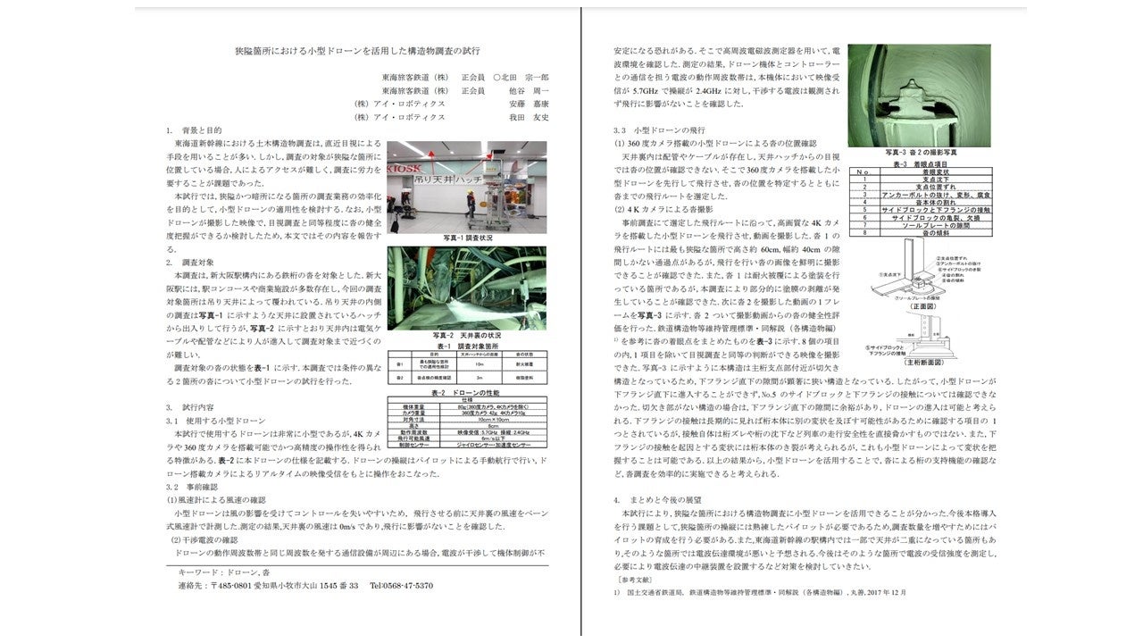 東海旅客鉄道(株)共同寄稿。小型ドローンを用いた狭隘部調査施行内容を土木学会へ論文提出