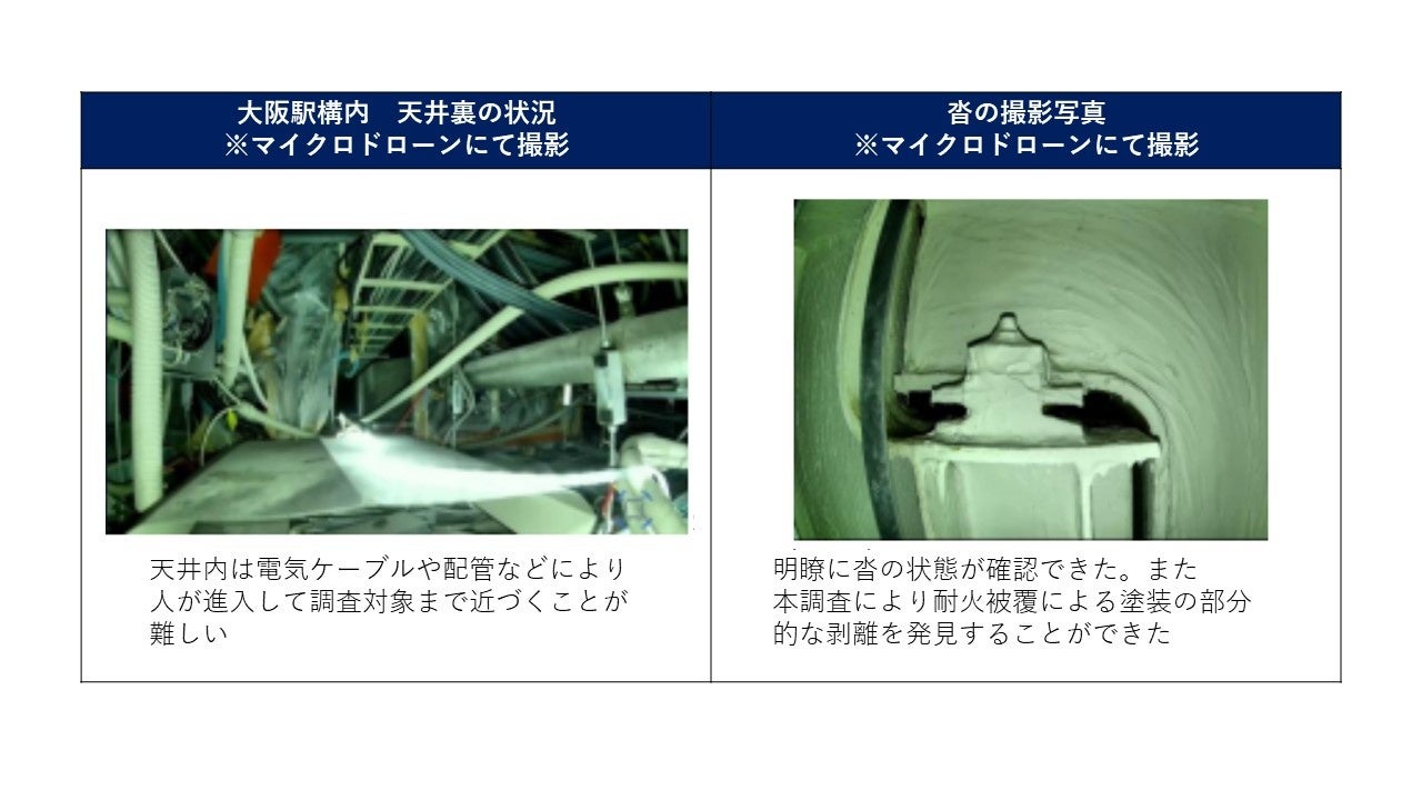 検証結果 :狭隘な箇所における構造物調査に小型ドローンを活用の有用性を確認