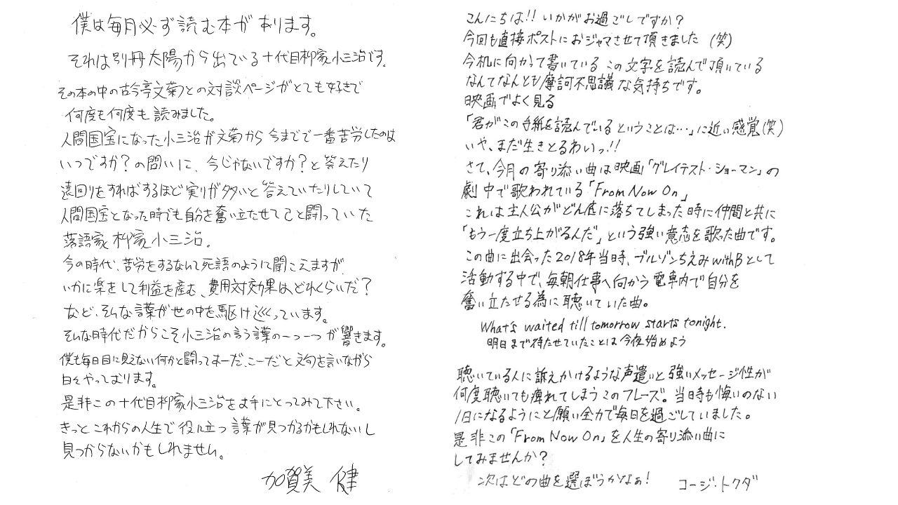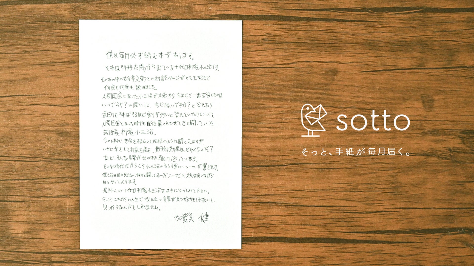 「sotto」のコンセプトに共感いただいた、様々なフィールドで活躍されている11名の方に書いていただいた手紙が毎月自宅に届きます。