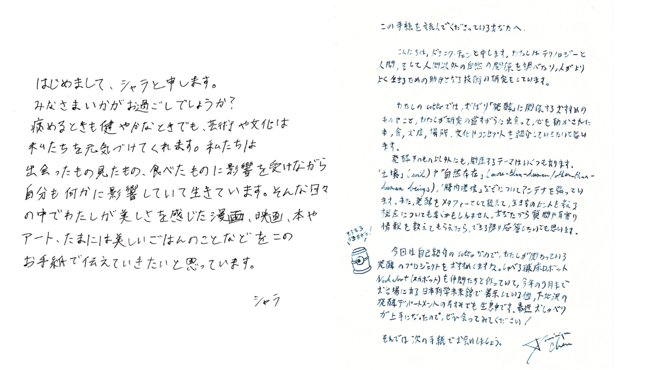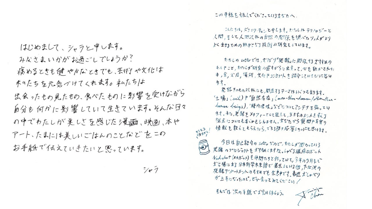 【脱デジタル・脱SNS】アナログな手書きコミュニケーションの価値を再発見。気鋭のクリエイター・アーティストからの手紙が毎月届いて返事が書けるサービス「sotto」が誕生。