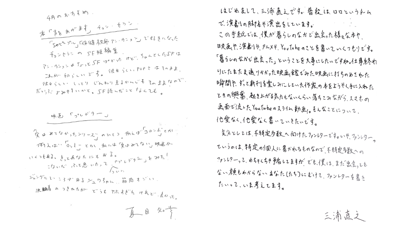 アート、音楽、ファッション、演劇、芸能、社会など、それぞれのフィールドで活動するクリエイター・アーティストが提供する手紙による新しいコミュニケーションを、ぜひそっと体験してください。