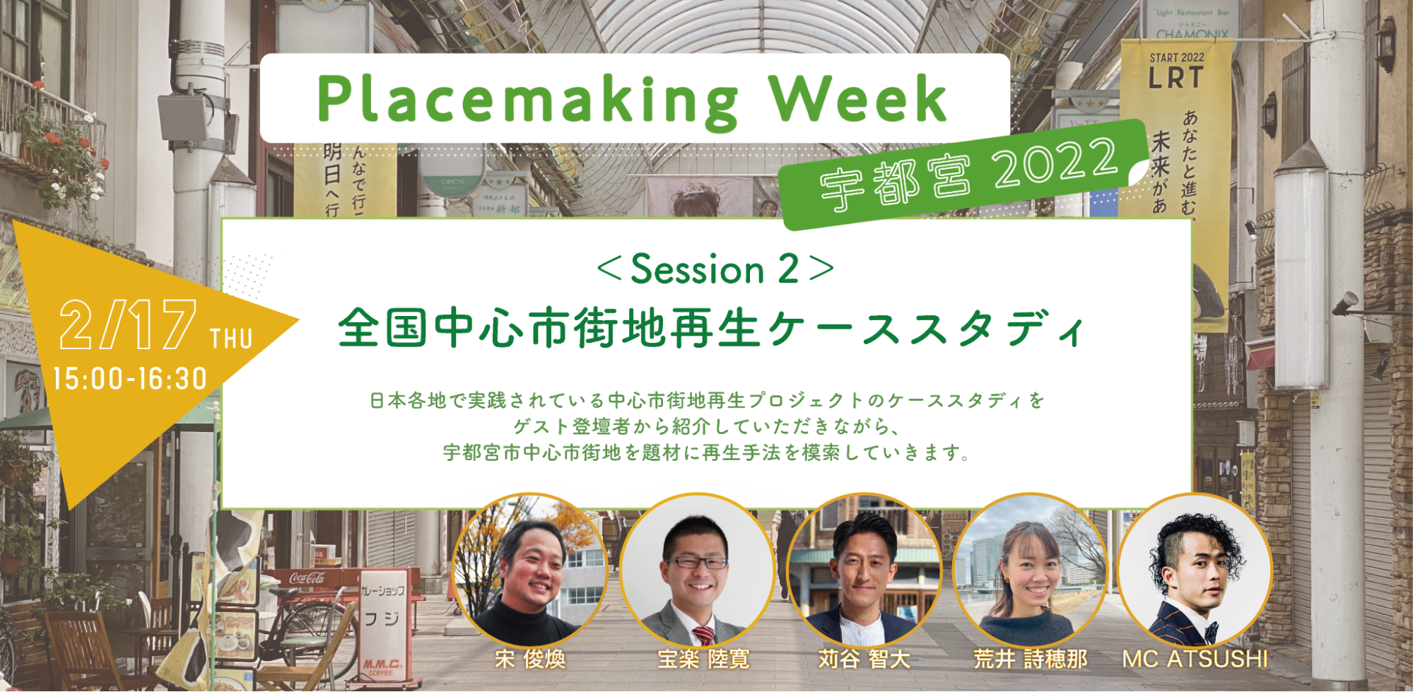 国内のプレイスメイカーを迎え、宇都宮を中心テーマに全国の様々なプレイスメイキングを議論する3つのプログラムを展開。|2022年2月17日(木)